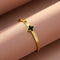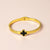 Add a touch of modern luck to your wrist with this chic gold-tone bangle. The design features a sleek band with a textured, grid-like finish, centered by a classic black four-leaf clover motif. Its hinged closure ensures a seamless fit, making it a versatile accessory for everyday elegance or stacking.