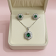 Radiate timeless sophistication with this exquisite gold-tone jewelry set. The necklace features a graceful curved bar adorned with pave crystals, anchoring a central round stone and a stunning deep emerald-green pear-shaped drop wrapped in a sparkling halo. The set includes matching drop earrings, making it a perfect choice for formal events or evening wear.